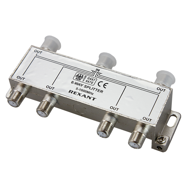 Делитель оснащен одним входом под F разъем и шестью выходами, также под F разъемы.