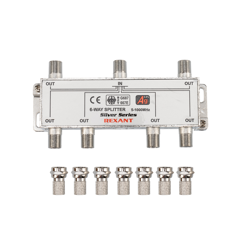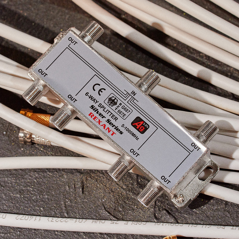 Устройство оснащено шестью выходами для сигнала и подключается с помощью стандартных F-разъемов. В комплекте поставляется 7 F-разъемов.