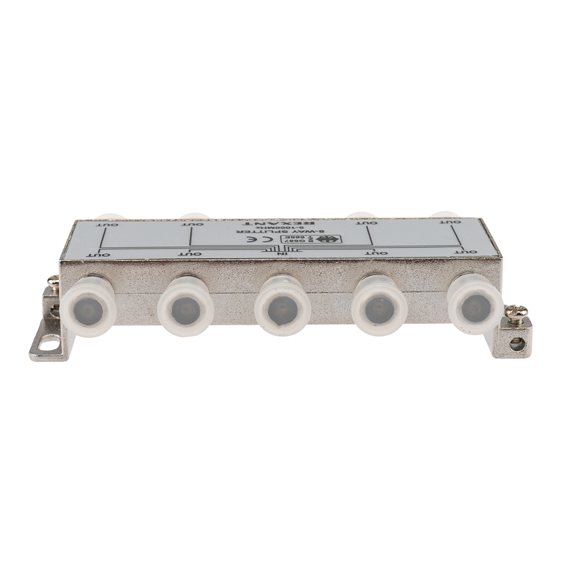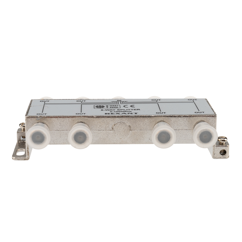 Сигнал, подающийся на вход, делится на восемь равных частей и передается на выходы. Для подключения кабелей используются стандартные F-разъемы.