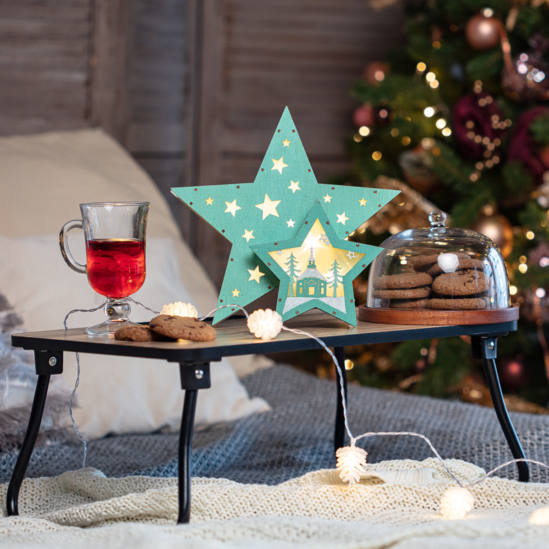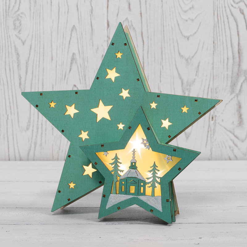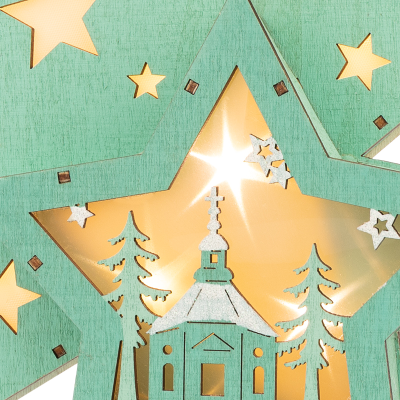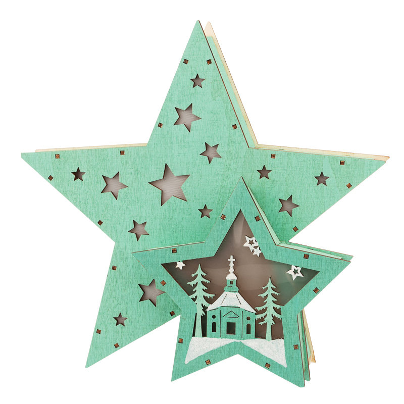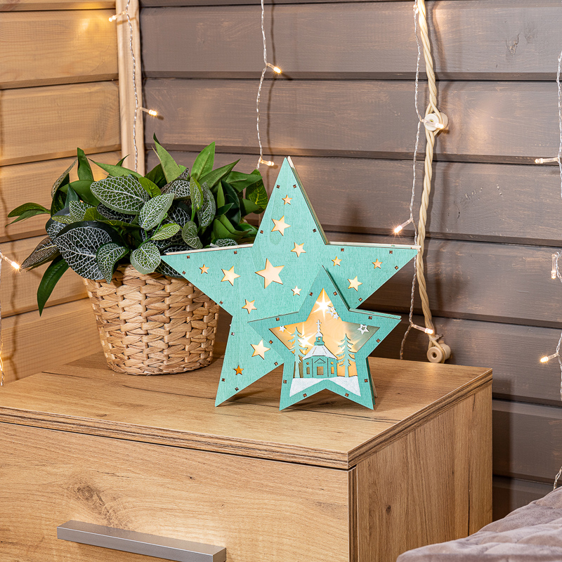 Деревянная фигура с подсветкой «Домик Звездочета» 26×7×25 см — сказочный интерьерный декор, который создан, чтобы дарить праздничное настроение и ощущение уюта. Диодная подсветка теплого оттенка эффектно выделяет декоративные фигурки внутри основной конструкции. 8 диодов работают от 2 мизинчиковых батареек (тип ААА) и позволяют надолго забыть о периодической замене элементов питания благодаря экономичности. Безопасные экологичные материалы не вызывают аллергии, поэтому деревянную фигурку можно использовать для детских игр.