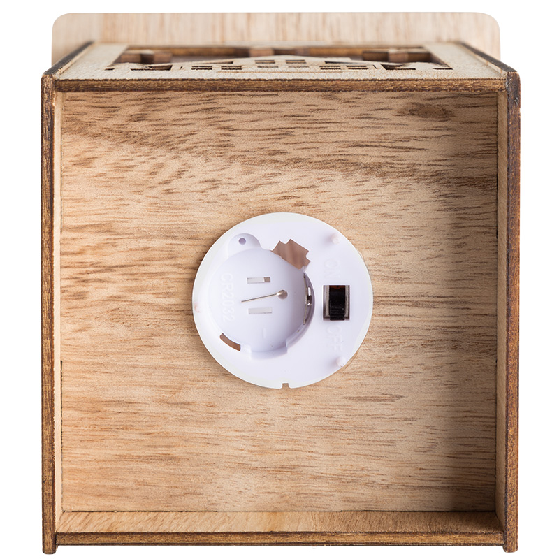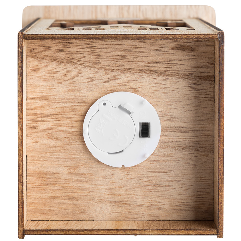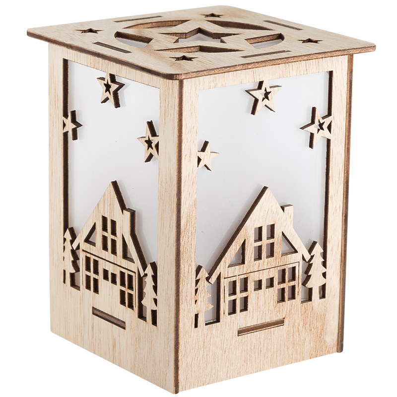 Деревянная фигурка с подсветкой «Волшебный фонарик» 13,8×11×11 см создана, чтобы гармонично украсить ваш интерьер, наполнить дом уютом, теплом и создать ощущение комфорта. Светодиодный декор выполнен в виде фонаря в прямоугольном корпусе из натуральной древесины. Экологичный материал не вызывает аллергии. 1 яркий диод мягко подсвечивает резные фигурки домиков. Изделие питается от 1 батарейки CR2032, которая входит в комплект. Деревянная фигурка с подсветкой — прекрасный подарок для родных и друзей.