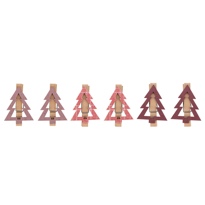 Деревянные прищепки «Елочки» выполнены из натуральной древесины и покрыты красителем трех приятных оттенков розового, которые непременно понравятся и детям, и взрослым. Прищепки рассчитаны на длительную эксплуатацию и прослужат не один сезон. В набор входят 6 изделий размером (размер каждого изделия 4,4x2,6x1,4 cм), которые станут интересным решением в декоре интерьера, помогут закрепить гирлянду на елке, красиво упаковать подарки, оформить новогодние поздравления родным и близким. Резные фигурки елочек — главный атрибут зимних праздников.