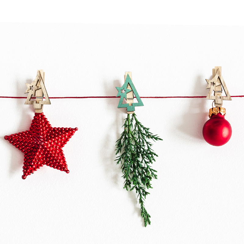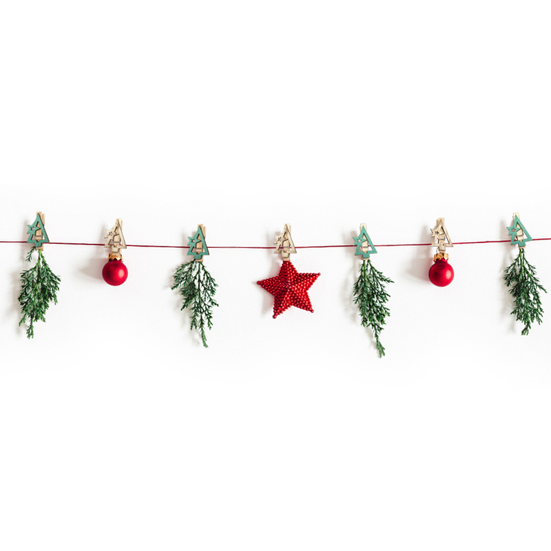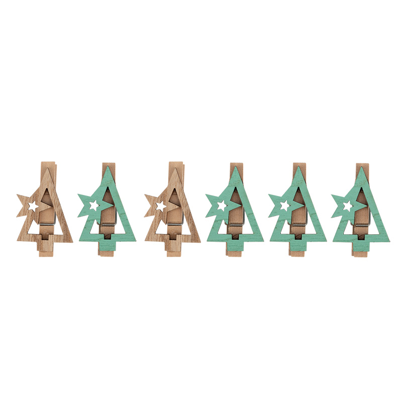 Деревянные прищепки «Новогодняя ель» (размеры каждой 4,4x2,6x1,4 cм) — интересное решение, которое не только станет оригинальным украшением интерьера, но и поможет воплотить самые смелые идеи в создании уникальных арт-объектов. Крепкие механизмы пригодятся при упаковке новогодних подарков, подойдут для фиксации светодиодных гирлянд на еловых ветках. 6 прищепок, входящих в набор, выполнены из натуральной древесины с характерной фактурой поверхности, покрытой безопасным нетоксичным составом.