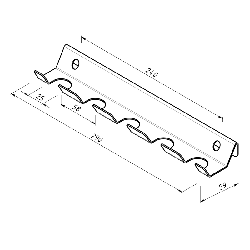 Настенный держатель для хранения садового инвентаря позволяет удобного и быстрого разместить различные инструменты: лопаты, грабли, косы, мотыги, аэраторы, вилки, посадочные тяпки, рыхлители, садовые совки, садовые ножницы, секаторы, кусторезы, сучкорезы и т.д. Рассчитан на хранение пяти предметов одновременно