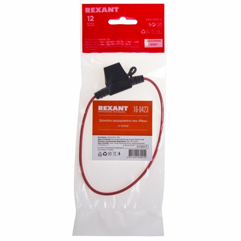 Держатель на проводе REXANT предназначен для фиксации флажкового предохранителя типа Мини и его защиты от внешних физических воздействий. Изделие также применяется для защиты электрической цепи и ее элементов от скачков напряжения, перегрева и возгорания.
