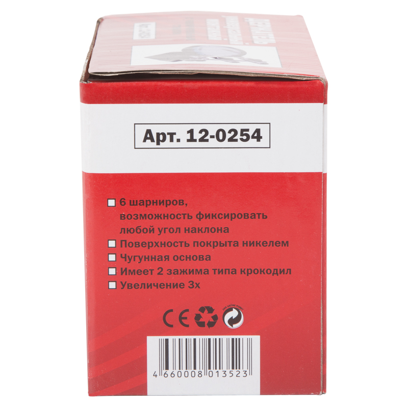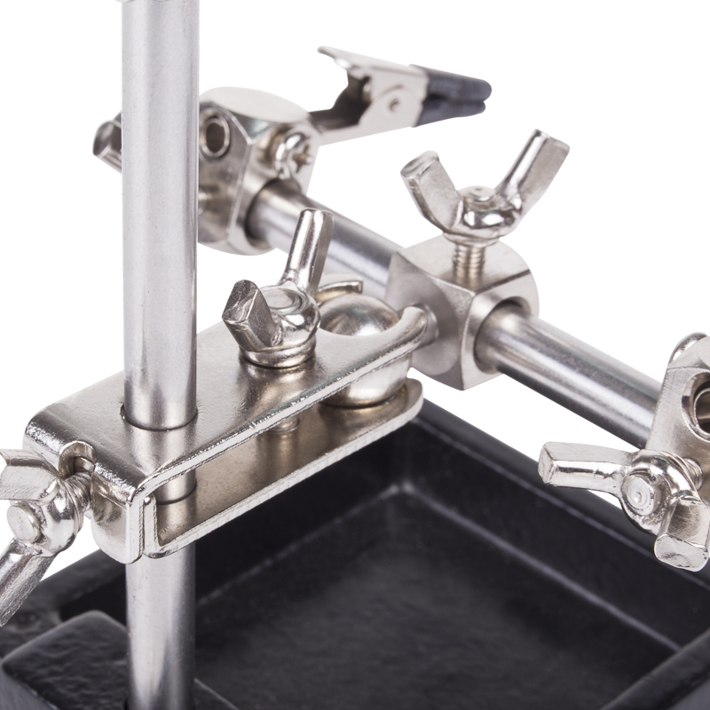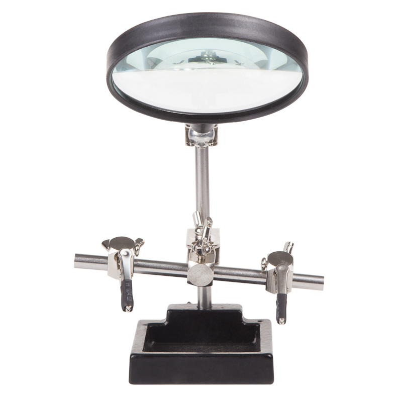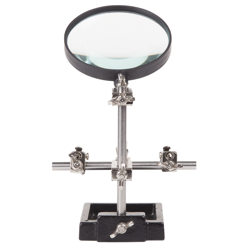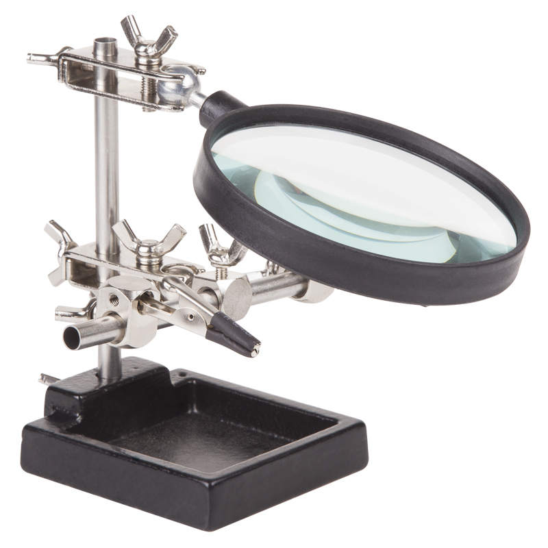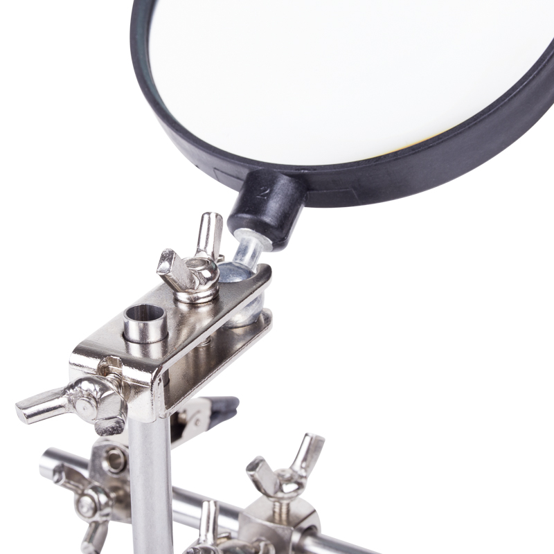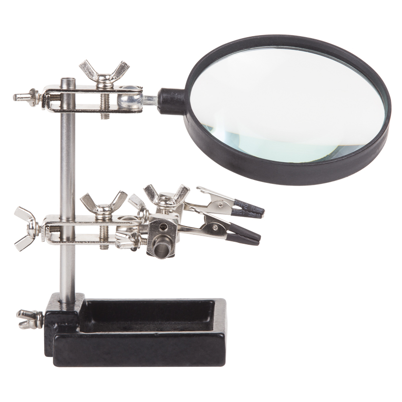 Держатель «третья рука» с лупой х3 REXANT служит главным образом при проведении паяльно-сборочных работ в электронике, ювелирном деле, сборке и ремонте для зажима мелких деталей в любом нужном положении, когда не хватает двух рук.