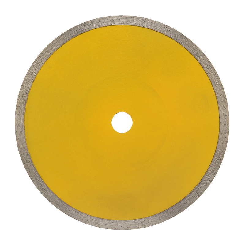 Сплошная конструкция способствует равномерному распределению нагрузки на кромке диска, а также создает более аккуратный рез. Процесс резки необходимо сопровождать водяным охлаждением.