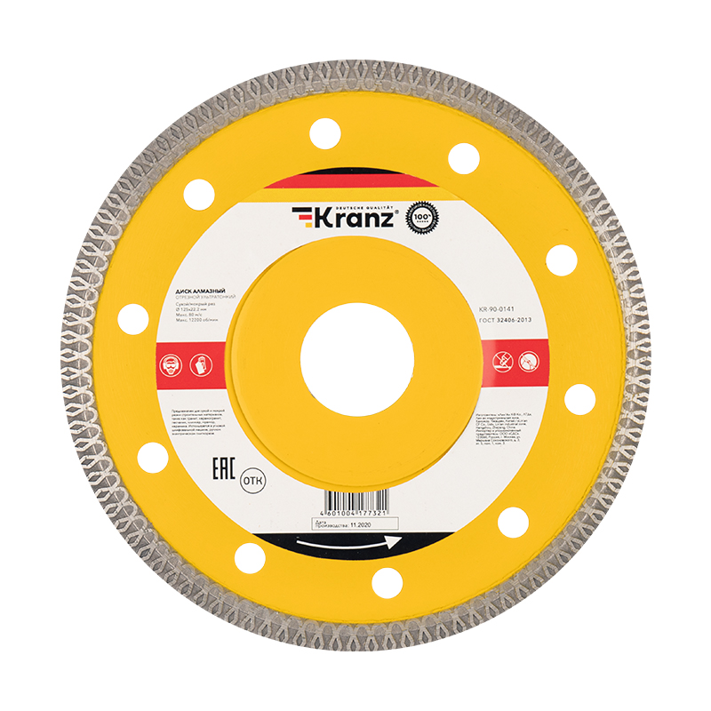 Диск алмазный отрезной ультратонкий 125x22,2x1,4x10 мм KRANZ