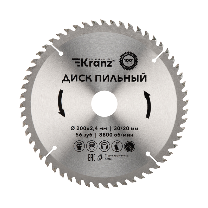 Диск пильный 200 мм х 56 зуб х 30/20 мм KRANZ