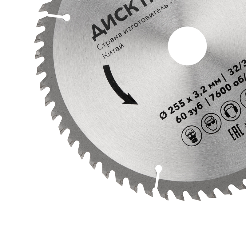 Используется совместно с торцовочными и циркулярными пилами. Перед использованием оснастки необходимо обратить внимание на допустимое количество оборотов в минуту.