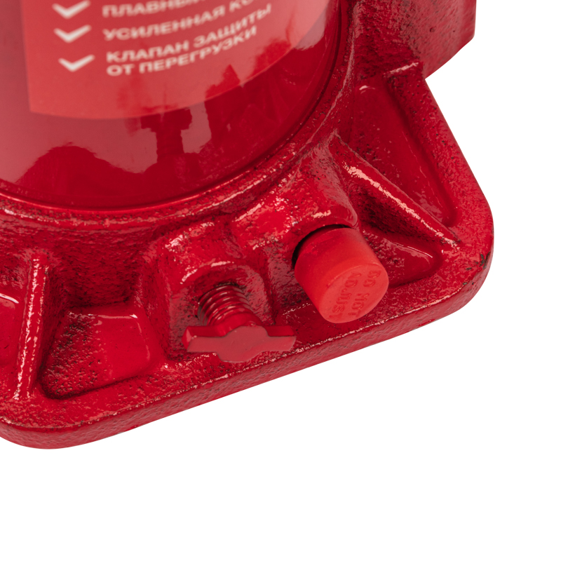 Клапан безопасности предотвращает подъем груза тяжелее 12 т, предохраняя домкрат от поломки.