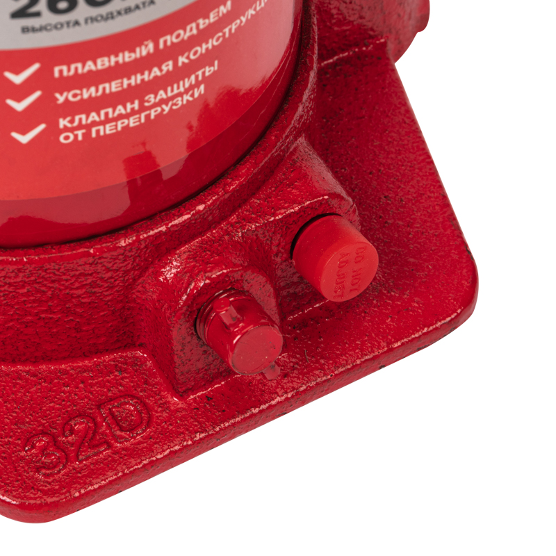 Клапан безопасности предотвращает подъем груза тяжелее 25 т, предохраняя домкрат от поломки.
