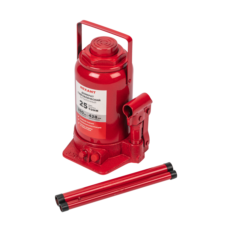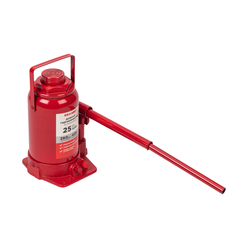 Гидравлический бутылочный домкрат REXANT предназначен для поднятия грузов массой до 25 тонн на высоту до 428 мм. Оптимален для автомобилей с большим клиренсом. Оснащен гидравлической системой, обеспечивающей высокую мощность и надежность.