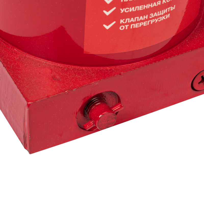 Клапан безопасности предотвращает подъем груза тяжелее 50 т, предохраняя домкрат от поломки.