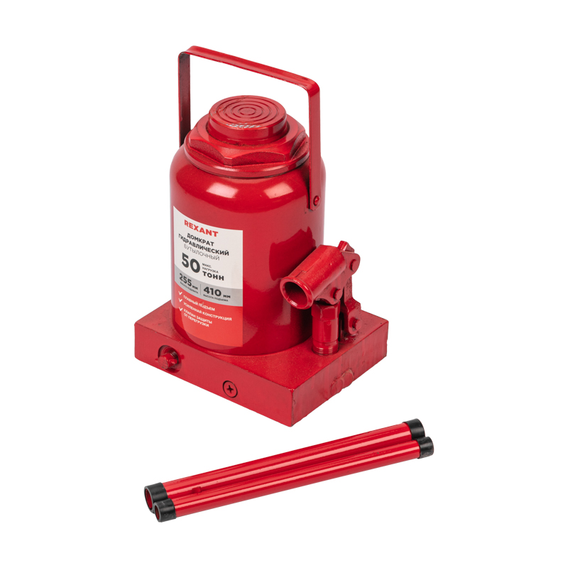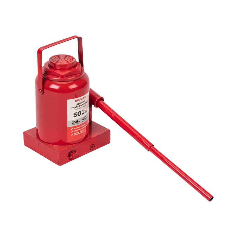 Гидравлический бутылочный домкрат REXANT предназначен для поднятия грузов массой до 50 тонн на высоту до 410 мм. Оптимален для автомобилей с большим клиренсом. Оснащен гидравлической системой, обеспечивающей высокую мощность и надежность.