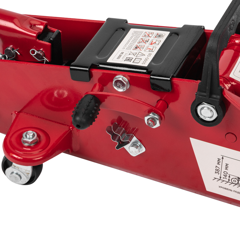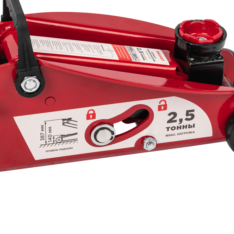Максимальная нагрузка – 2,5 т. Высота подхвата – 140 мм. Высота подъема – 387 мм.