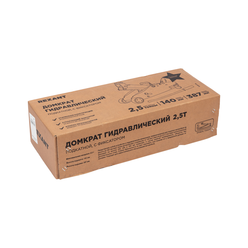 Гидравлический подкатной домкрат 2,5 т REXANT представляет собой устройство с гидравлическим механизмом, предназначенное для поднятия автомобиля на заданную высоту. Отличается плавностью хода, надежностью и жесткостью конструкции.