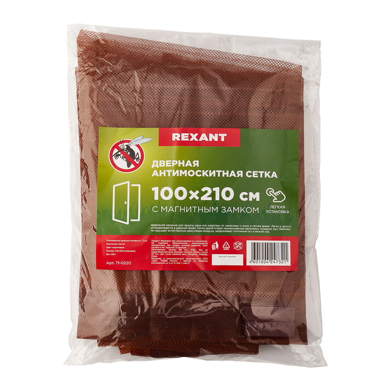 Дверная противомоскитная сетка REXANT впишется в любой интерьер и отлично справится с возложенным функционалом. В летний период проветривание помещения играет особую роль. Размер ячейки ткани магнитной сетки препятствует попаданию в комнату не только насекомых, но и пыли и других аллергенов.
