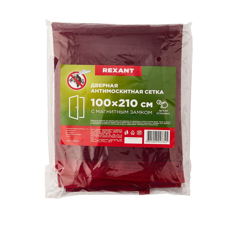 Дверная противомоскитная сетка REXANT впишется в любой интерьер и отлично справится с возложенным функционалом. В летний период проветривание помещения играет особую роль. Размер ячейки ткани магнитной сетки препятствует попаданию в комнату не только насекомых, но и пыли и других аллергенов.