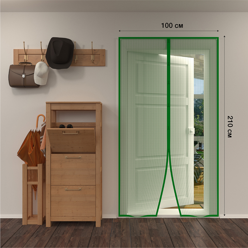 Дверная антимоскитная сетка 210х100см, с магнитами по всей длине, зеленая REXANT