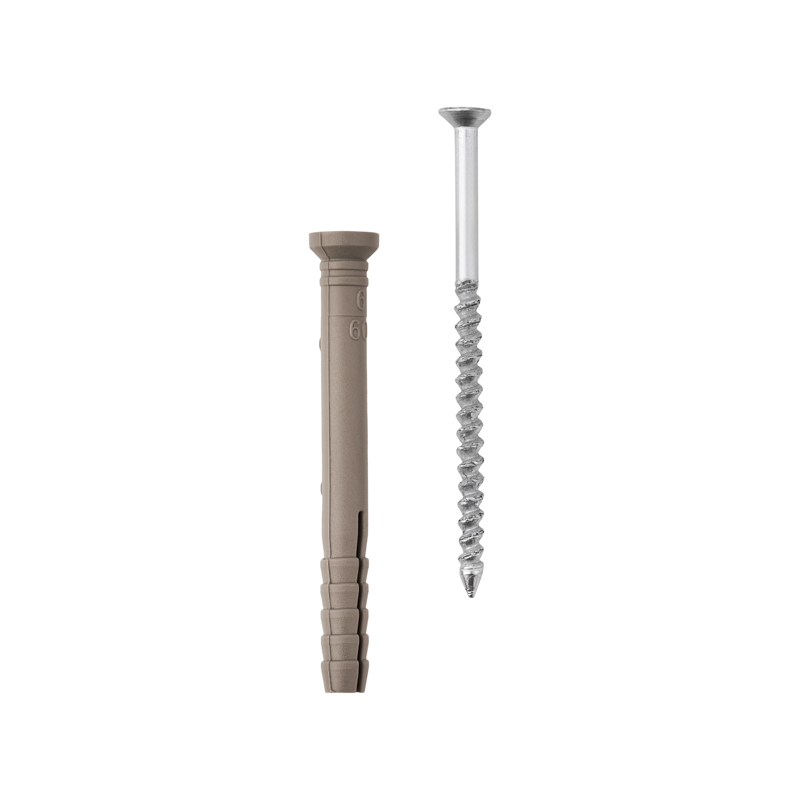 Усиление под шляпкой плотно фиксирует гвоздь в дюбеле, защищая его от излома.