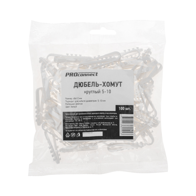 Дюбель-хомут 5-10мм, круглый, белый (100 шт/уп) PROconnect