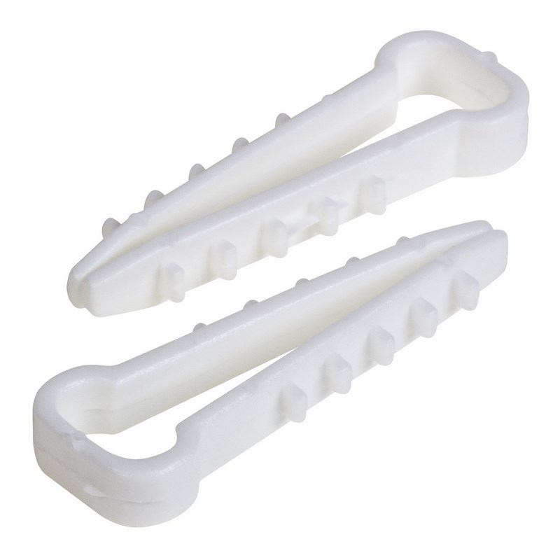 Дюбель-хомут представляет собой крепежное изделие с петлей для удержания кабеля и уникальной системой боковых шипов типа «елочка». Благодаря шипам крепеж легко вставляется в отверстие и не выпадает, а для извлечения такого дюбеля понадобятся плоскогубцы. Важно: для надежной фиксации дюбеля необходимо соблюдать точные параметры при сверлении отверстия, а для этого желательно использовать новую оснастку, которая не успела износиться. Дюбель может быть установлен в бетон, кирпич, газобетон и природный камень. Морозостойкие добавки добавляют крепежу устойчивость к низким температурам и позволяют использовать его на улице или в неотапливаемых помещениях.