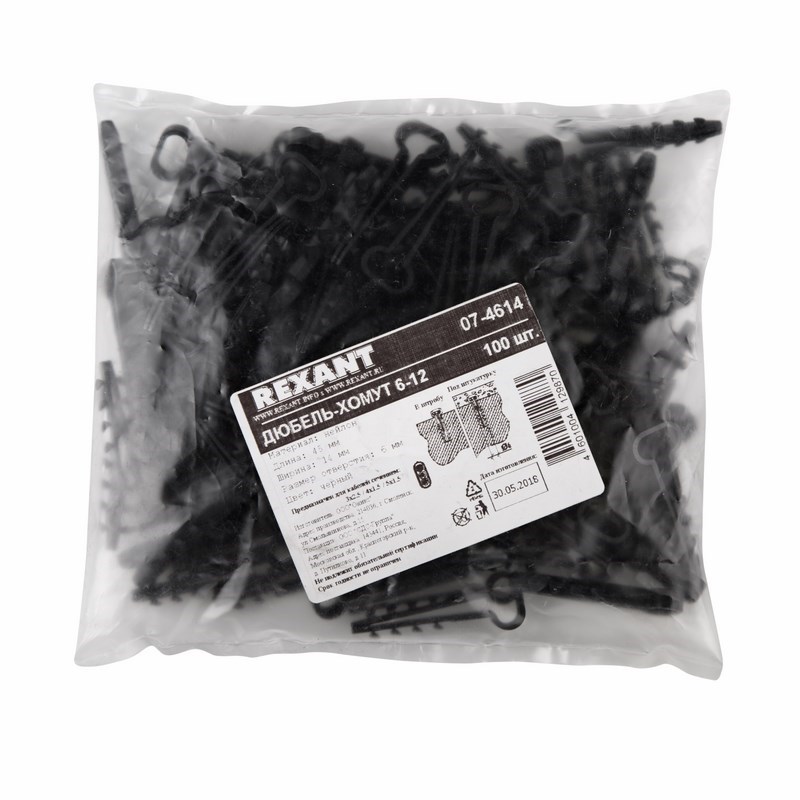В упаковке 100 дюбель-хомутов черного цвета.