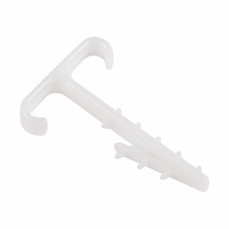 Т-образный дюбель-хомут для двух кабелей 12 мм предназначен для крепления к поверхности двух кабелей одновременно открытым или закрытым способом.
