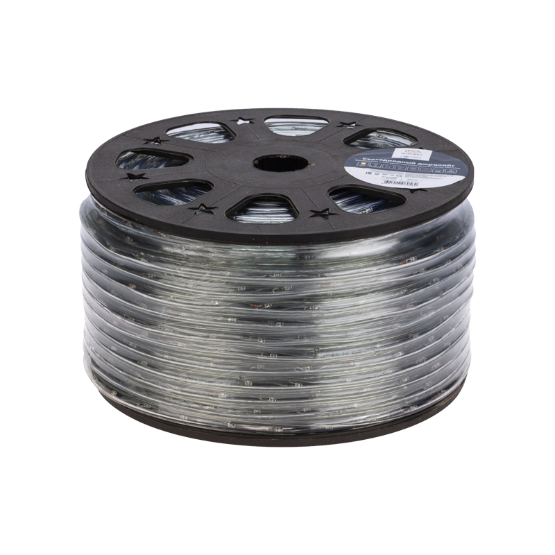 Дюралайт поставляется в бухте длиной 100 м. Следуя несложной инструкции, пользователь может легко отрезать и подключить отрезок дюралайта необходимой длины. Модуль резки составляет 2 м.