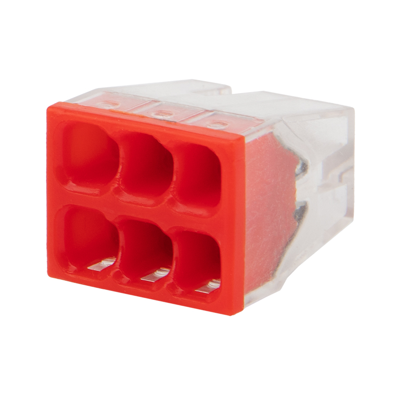 Компактный прозрачный корпус удобен для контроля соединения, а яркая цветовая разметка способствует визуальному различию клемм по количеству проводников.
