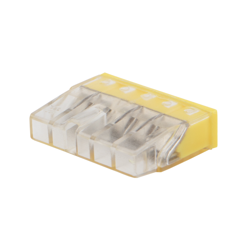 Компактный прозрачный корпус удобен для контроля соединения, а яркая цветовая разметка способствует визуальному различию клемм по количеству проводников.