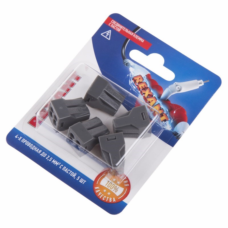 Экспресс-клемма с пастой СМК 773-304, 4-проводная до 2,5 мм² серая, (блистер 5шт.) REXANT