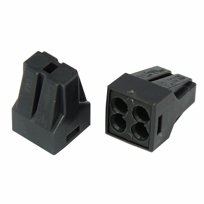 Электромонтажные экспресс-клеммы предназначены для соединения 4 проводов между собой (алюминиевые и медные как одножильные, так и многожильные). Подключение осуществляется способом проталкивания до упора очищенного от изоляции провода в свободное гнездо.  Клеммы наполнены специальной контактной пастой, которая создает барьер для попадания влаги внутрь разъёма, а так же препятствует окислению проводников. Клемма имеет 4 контакта, напряжение 400 В,   Максимальным током 24А,