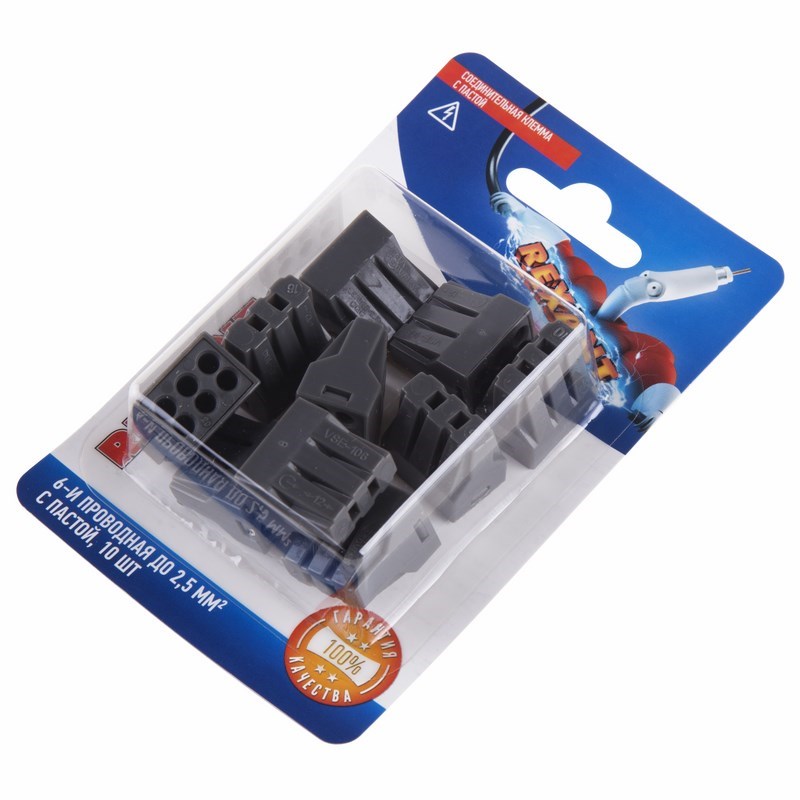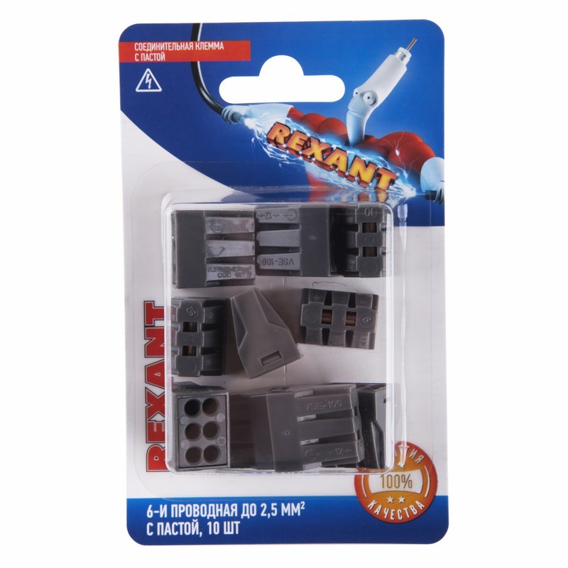 Экспресс-клемма с пастой СМК 773-306, 6-проводная до 2,5 мм² серая, (блистер 10 шт) REXANT