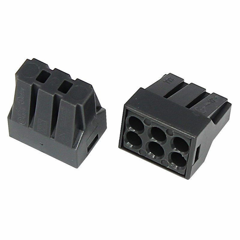 Электромонтажные экспресс-клеммы предназначены для соединения 6 проводов между собой (алюминиевые и медные как одножильные, так и многожильные). Подключение осуществляется способом проталкивания до упора очищенного от изоляции провода в свободное гнездо. Клеммы наполнены специальной контактной пастой, которая создает барьер для попадания влаги внутрь разъёма, а так же препятствует окислению проводников. Клемма имеет 6 контакта, напряжение 400 В, Максимальным током 24А,