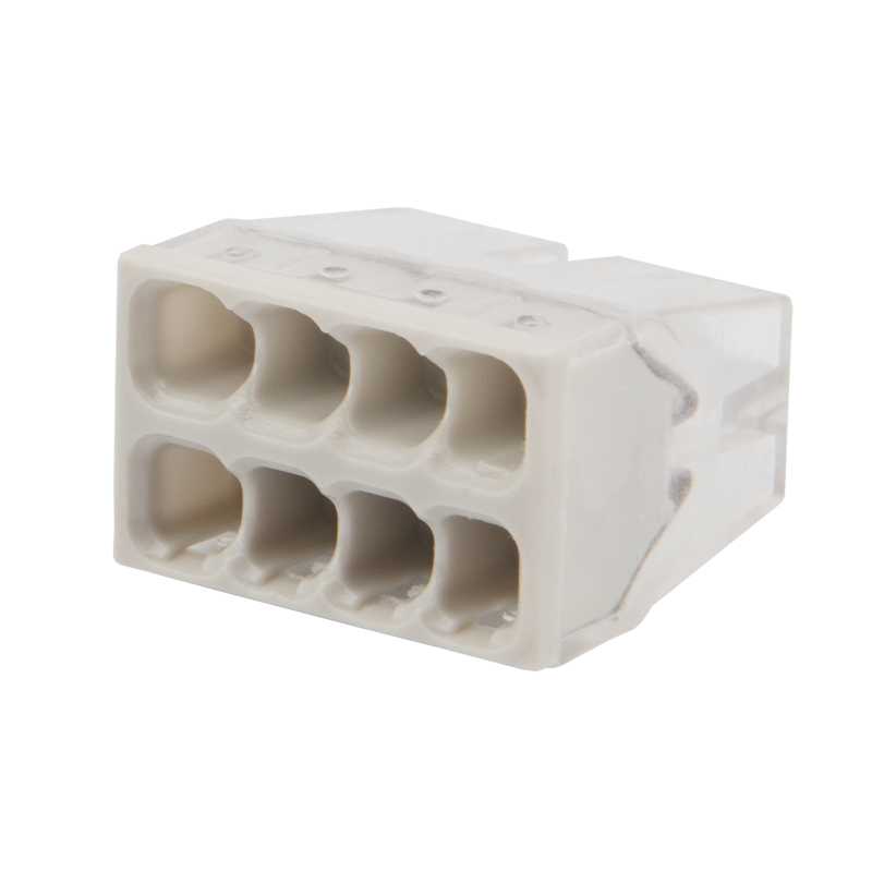 Компактный прозрачный корпус удобен для контроля соединения, а яркая цветовая разметка способствует визуальному различию клемм по количеству проводников.
