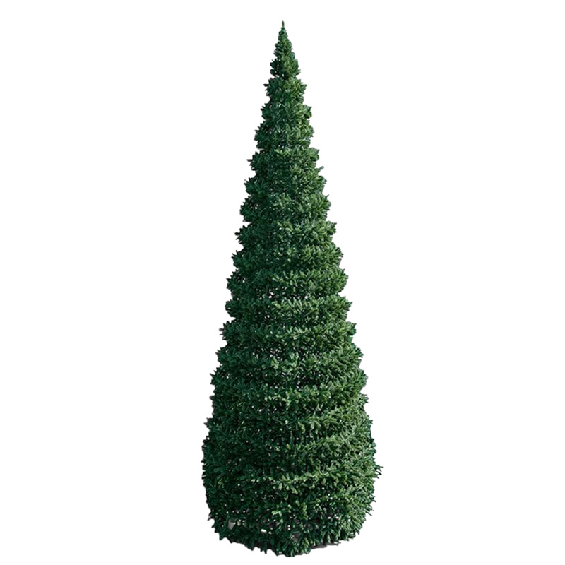 Ель представляет собой сборно-разборную металлическую конструкцию, состоящую из стального каркаса, покрытого порошковой краской с горячей сушкой, представляющего собой конус с центральным стволом и дугообразными элементами.
