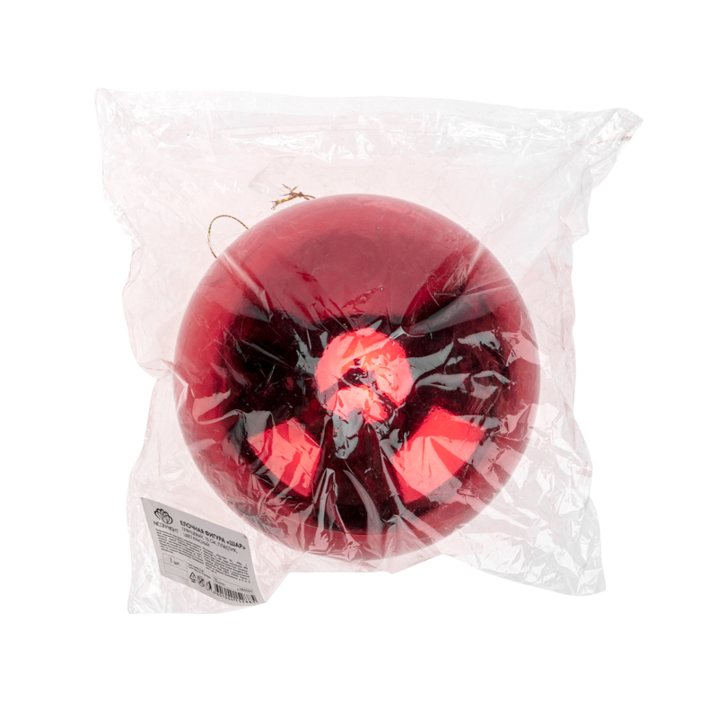 Данный шар имеет диаметр 15 см, цвет красный глянцевый, выполнен из пластика.