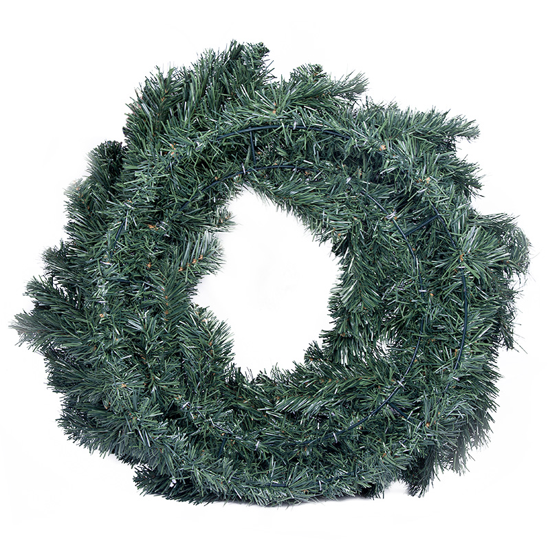 Еловый венок с диаметром 60 см поможет красиво оформить входную дверь в новогодние праздники, чтобы гости почувствовали неповторимую атмосферу уюта и переняли веселое настроение прямо с порога. Декор выполнен из ПВХ пленки, традиционного для хвойных веточек цвета. Иголки не колются и не царапают кожу при прикосновении. Еловый венок можно использовать как дома, так и на улице. Изделие, дополненное елочным шарами, гирляндой или светодиодными фигурками, станет эффектным украшением вашего дома.