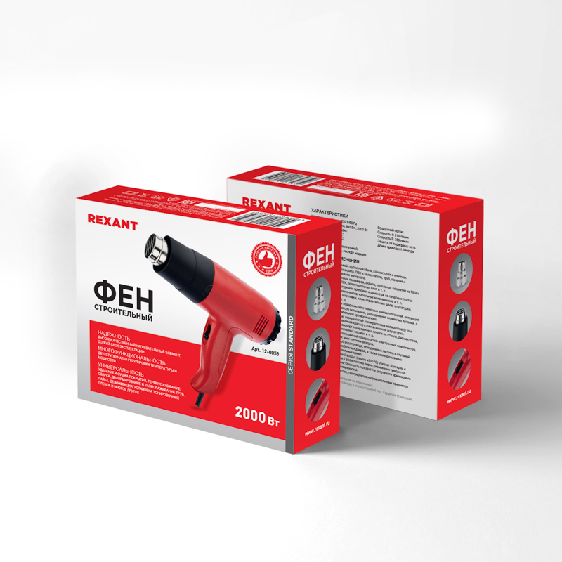 Комплектация: фен строительный (1 шт.), редукционная насадка (1 шт.), паспорт (1 шт.).
