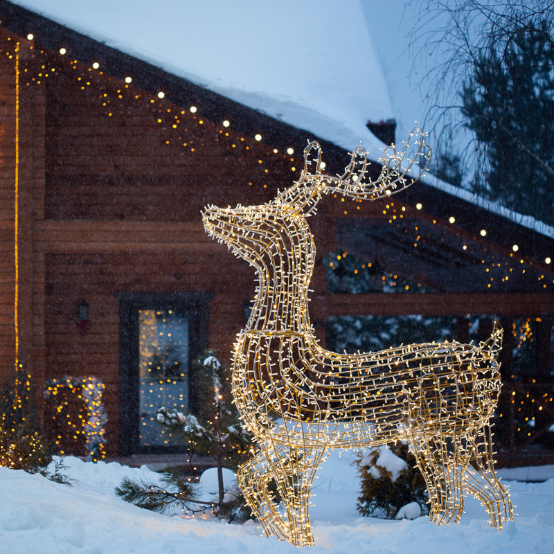 Объемная световая фигра выполнена из металлического каркаса с использованием светодиодных гирлянд.