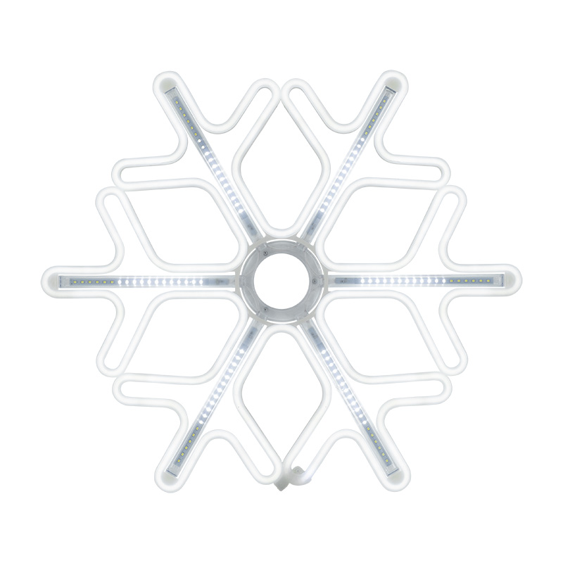 «Снежинка» имеет размер 60х60 см, выполнена из белого неона и белых светодиодных лучей.