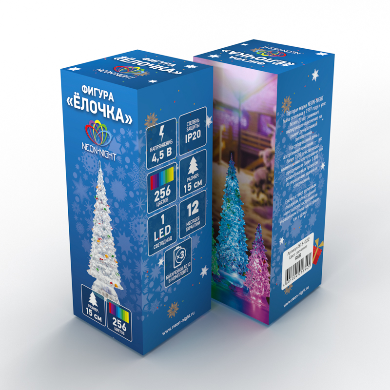 Светодиодная фигура «Елочка» высотой 15 см выполнена из ударопрочного прозрачного пластика. Внутри располагается 1 светодиод RGB, который непрерывно меняет цвета в хаотичном порядке, эффектно подсвечивая корпус. Изделие получает питание от 3 батареек типа AG13. Независимость от электрической розетки позволяет украсить фигурой любой уголок вашего дома.