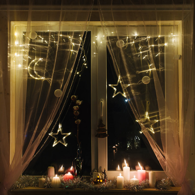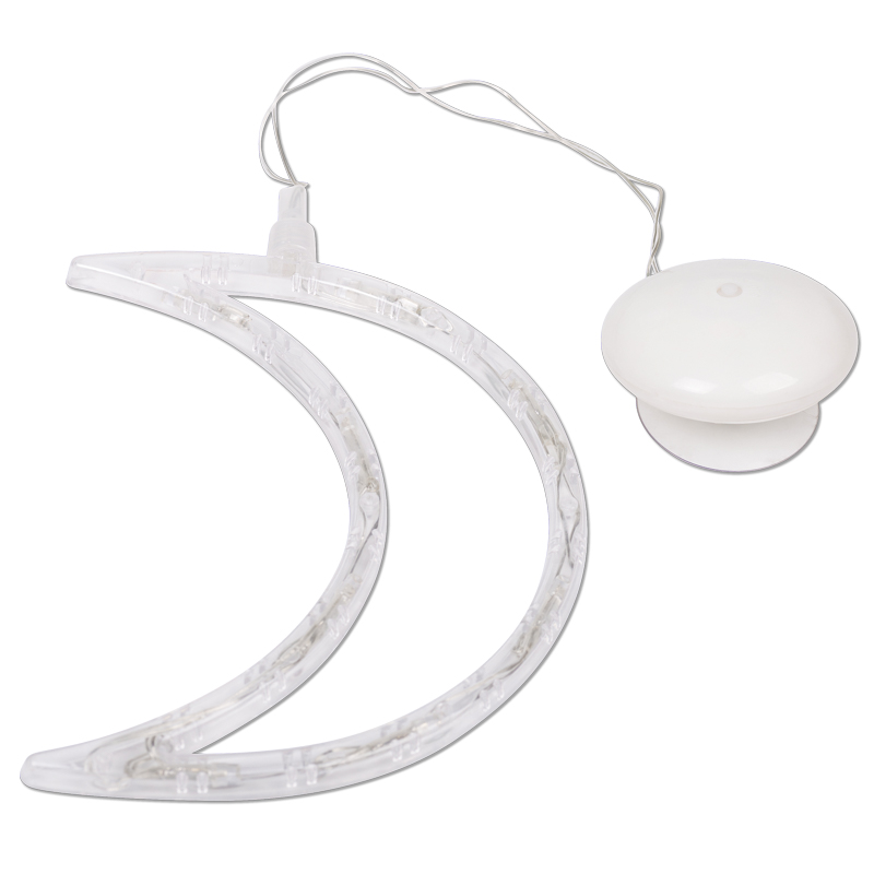 Светодиодная фигура «Месяц» — великолепный подарок родным и близким, который станет оригинальным украшением интерьера, как праздничного, так и повседневного. Изделие крепится на гладких поверхностях при помощи присоски, расположенной на батарейном модуле. Серебристый шнур, заключенный в изоляционную оболочку из ПВХ, отличается гибкостью, поэтому фигуру можно зафиксировать горизонтально и оставить свободно свисать. 8 диодов теплого белого свечения работают от 3 батареек типа ААА и экономно тратят заряд.