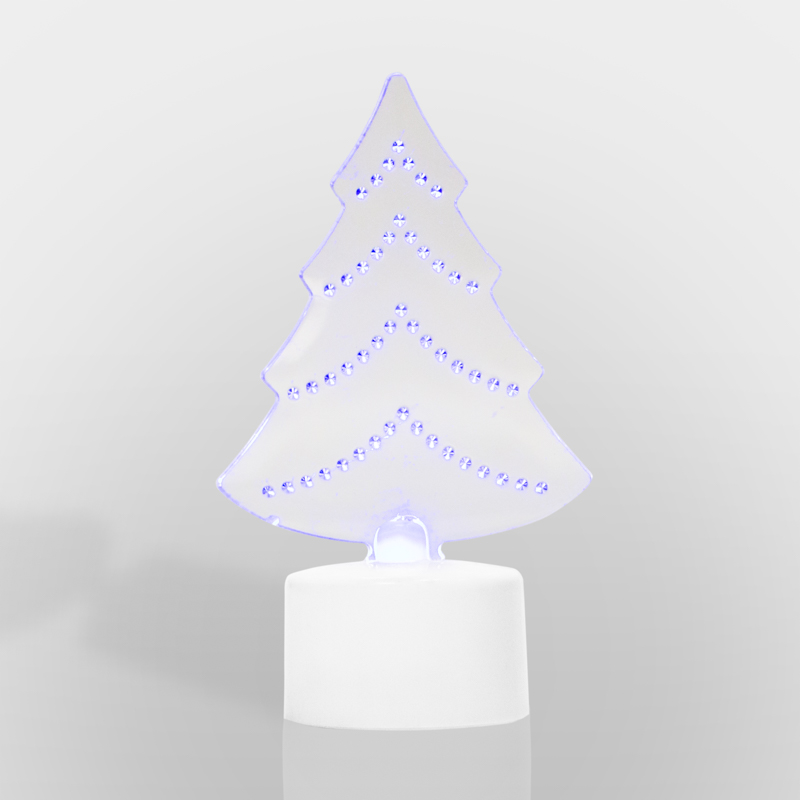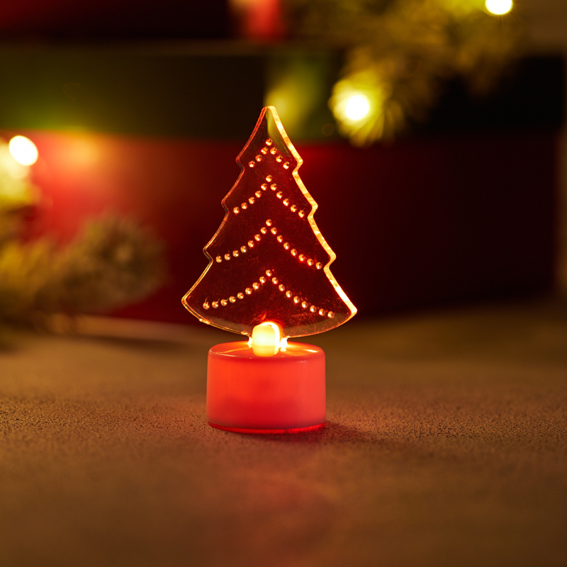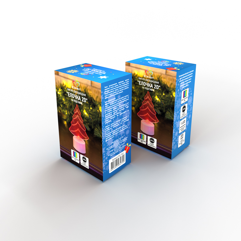 Светодиодная фигурка на подставке «Елочка 2D» — милый сюрприз для родных, коллег или друзей на новогодние праздники, который символизирует зимнее веселье и радость. Изделие выполнено из полимера EVA — экологичного, прочного пластика, внешне напоминающего оргстекло. Фигурка с обработанными краями подсвечивается одним диодом RGB, хаотично меняющим цвета. В гамме всего 256 оттенков, плавно перетекающих из одного в другой. Интерьерный декор работает от 3 батареек, что делает его мобильным.