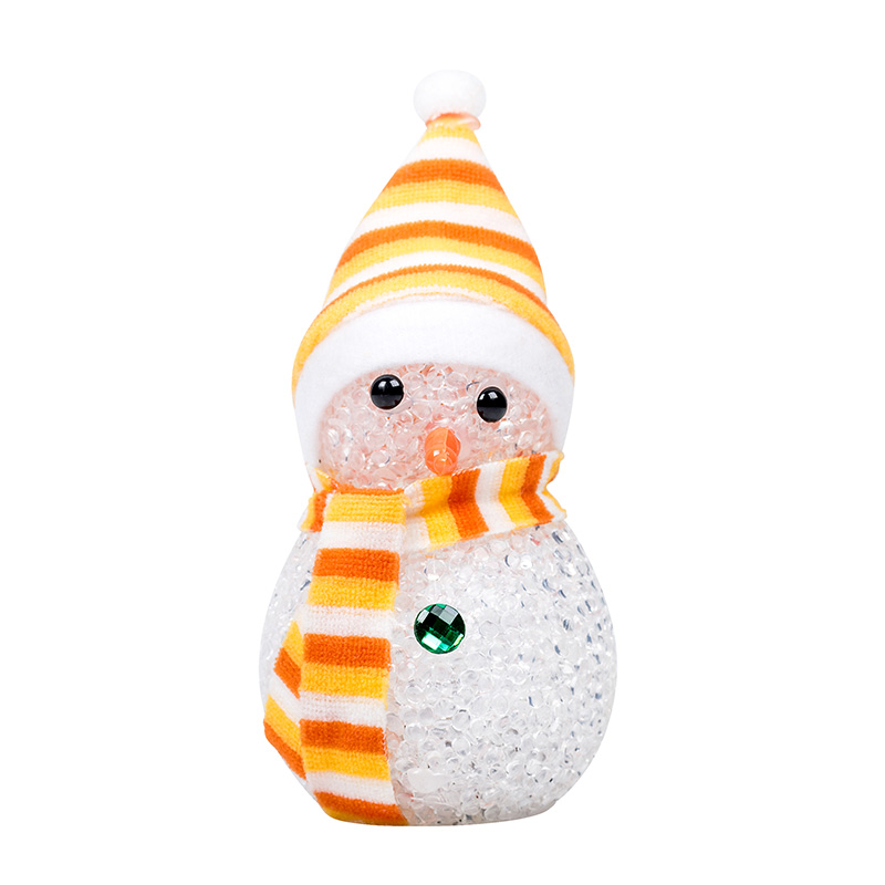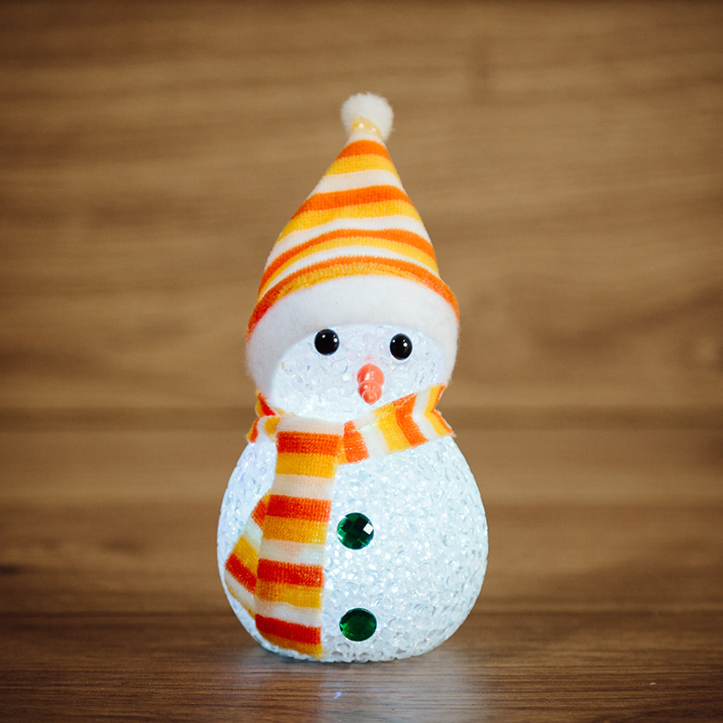 Светодиодная фигура «Снеговик» высотой 17 см выполнена в виде милого новогоднего персонажа, одетого в текстильные шарф и шапочку. Фактурные снежные комья, из которых собран снеговик, изготовлены из пластика EVA — современного, безопасного, прочного материала. RGB светодиод эффектно подсвечивает композицию, меняя оттенки в хаотичном режиме. Светодиоды экономно тратят заряд трех батареек типа AG13, находящихся в специальном аккумуляторном блоке. Элементы питания идут в комплекте.