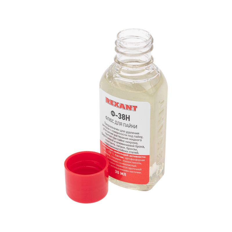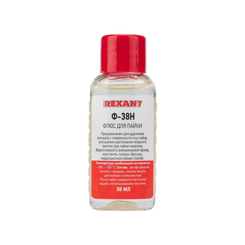 Флюс Ф-38Н REXANT предназначен для удаления оксидов с поверхности под пайку, улучшения растекания жидкого припоя и защиты от окисления нихрома, константана, манганина, бериллиевой и алюминиевой бронз, коррозионностойких сталей от воздействия окружающей среды. Изготовлен в соответствии с ОСТ 4Г 0.033.200.