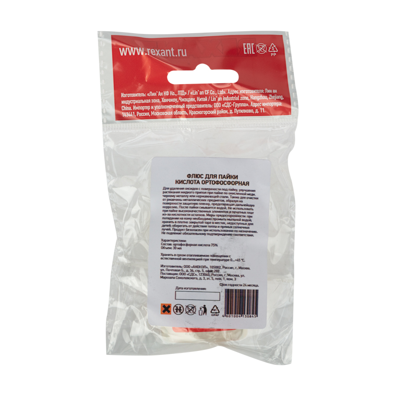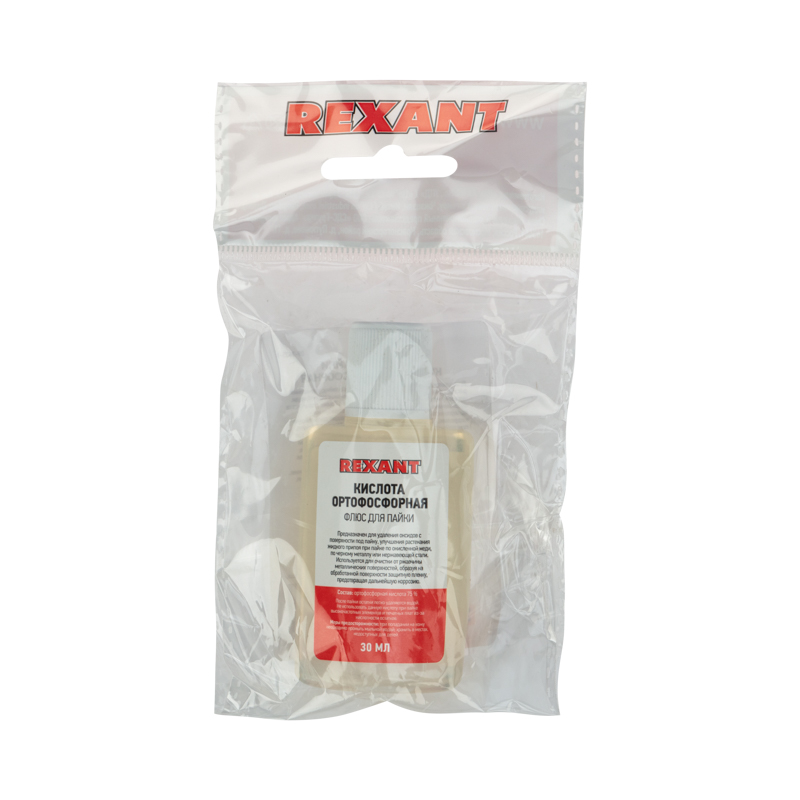 Флюс для пайки, КИСЛОТА ОРТОФОСФОРНАЯ, 30мл, пакет REXANT