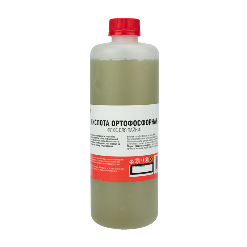 Ортофосфорная кислота REXANT предназначена для удаления оксидов с поверхности под пайку, улучшения растекания жидкого припоя при пайке окисленной меди, нержавеющей стали, черных или цветных металлов. Изготовлена в соответствии с ГОСТ 10678-76. Применяется в качестве флюса при пайке или лужении деталей низкотемпературными припоями. Также используется для очистки от ржавчины металлических поверхностей, образуя защитную пленку и предотвращая образование коррозии.